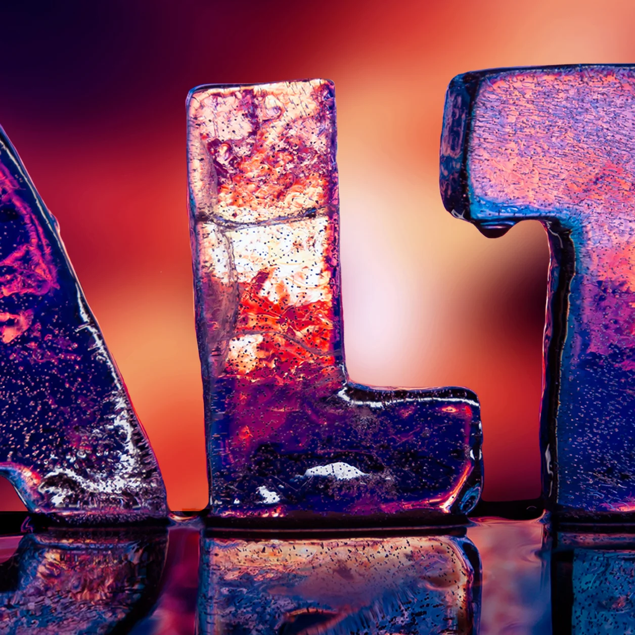 This project began as a poster design for a concert by a band of my choice, Alt-J (∆), but developed into a redesign of their debut album. Inspired by the visuals for one of their singles, I carved the band name from ice and photographed the letters in front of a glowing screen to produce vivid rippled colors.