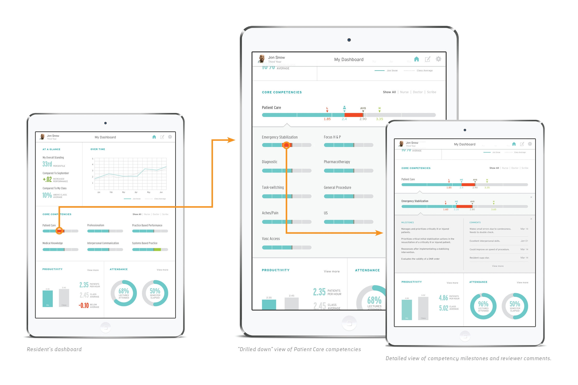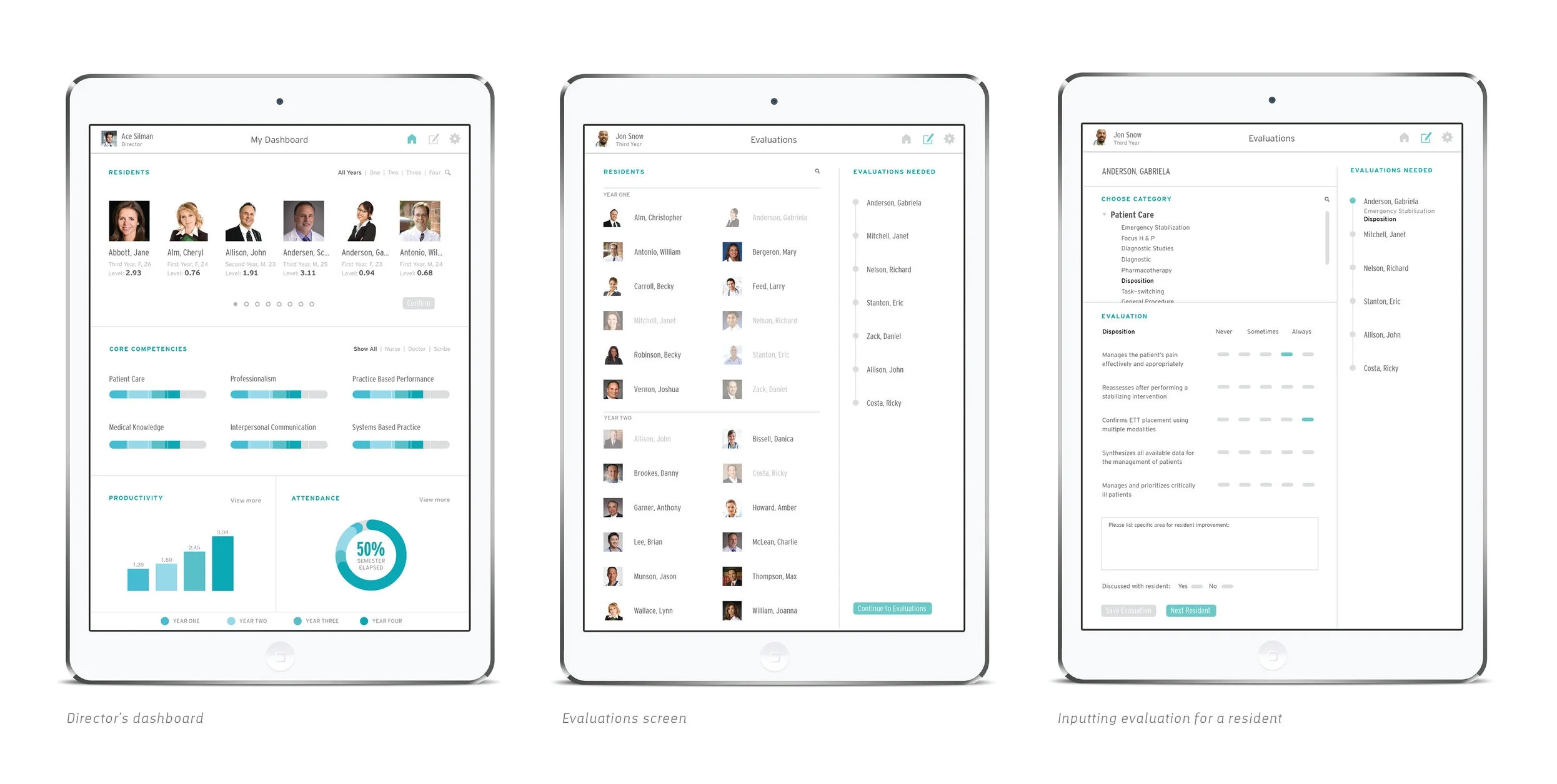 In addition to residents needing to track their progress in the competencies, the program directors must be able to track both individual progress as well as an entire classes progress. Lastly, staff and residents needed a simple way to input reviews and assessments for residents.
